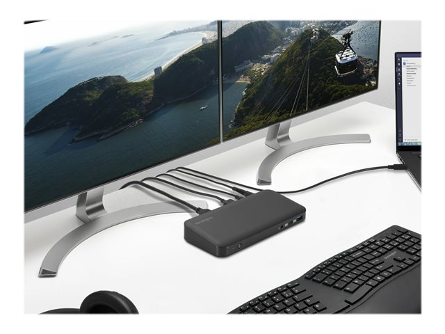 Si vous possédez une Surface équipée d'USB-C et que vous avez besoin de travailler sur plusieurs écrans, la SD4845P est la station d'accueil qu'il vous faut. Un unique câble USB-C vous permet de connecter en Plug & Play jusqu'à trois moniteurs 1080p sans aucun pilote, dongle ou adaptateur. Ce même câble vous permet de recharger votre ordinateur portable avec une alimentation PD 85 W, de connecter votre souris, votre clavier et vos autres accessoires USB. Grâce à une grande vitesse de transfert de données de 10 Gbits/s, votre productivité ne connaîtra jamais de baisse de régime. Consultez le tableau de compatibilité pour voir les appareils pris en charge.