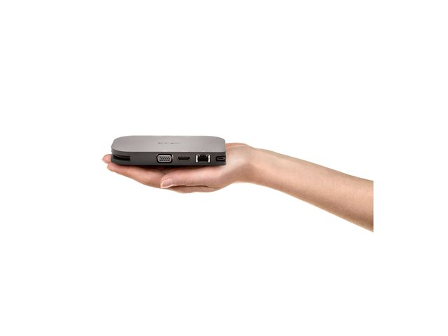 | Interfaces | 1 x USB-C avec distribution d'alimentation (60 W) - 24 pin USB-C 2 x USB - USB 9 broches type A 1 x réseau - Ethernet - RJ-45 1 x audio / vidéo - HDMI 1 x affichage / vidéo - VGA |
