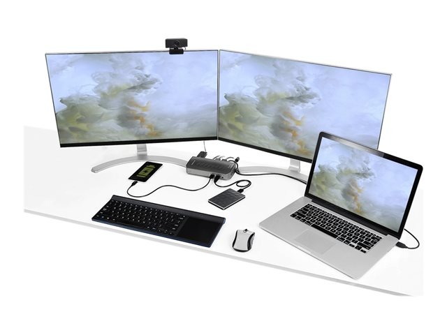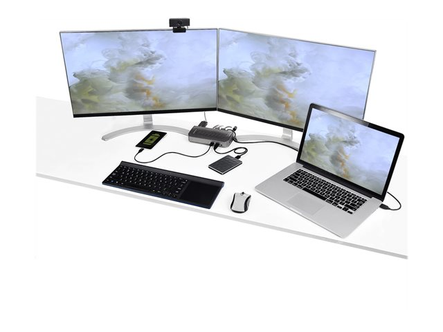 Passez de l'ancienne norme USB-A (USB 3.1/3.0) aux nouveaux ordinateurs portables USB-C grâce à cette station d'accueil universelle pour ordinateurs portables USB-C et USB-A. La station d'accueil USB 3.1 Gen 1 (5 Gbps) Type-C dispose de deux écrans HDMI et/ou DisplayPort, de six ports périphériques USB Type-A en aval et d'un casque audio.