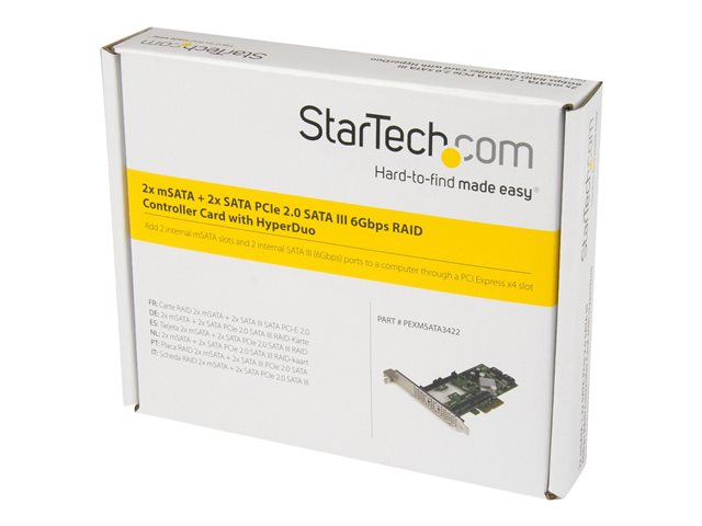 StarTech.com Carte contrôleur / Adaptateur PCI Express 2.0 RAID vers 2 ports SATA III 6 Gb/s avec 2 slots mSATA et HyperDuo SSD Tiering - Contrôleur de stockage (RAID) - 4 Canal - SATA 6Gb/s / mSATA - profil bas - RAID RAID 0, 1, 10, JBOD - PCIe 2.0 x4 - pour P/N: ST521PMINT