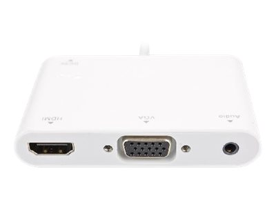 Cet adaptateur Dual Screen convertit le signal DisplayPort afin de pouvoir raccorder un écran HDMI et VGA. L'audio peut être géré via la prise jack 3,5 mm.
