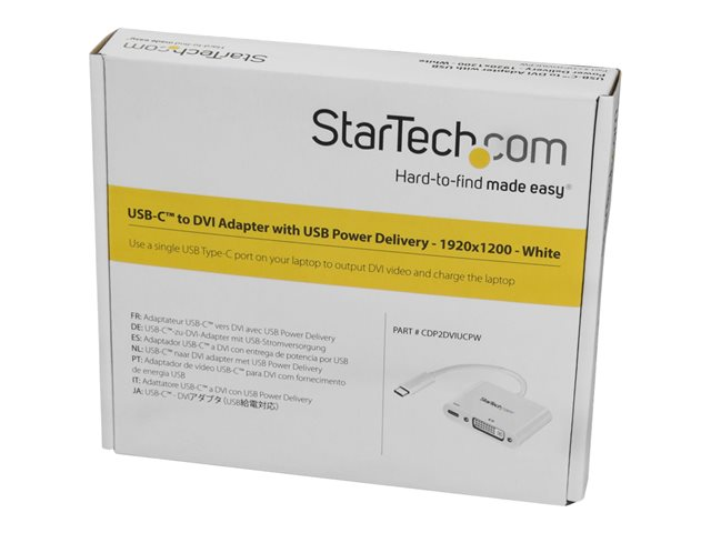 StarTech.com Adaptateur USB-C vers DVI avec USB Power Delivery - 1920x1200 - Blanc - Adaptateur vidéo externe - Parade PS171 - USB-C - DVI - blanc