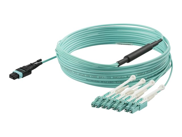 StarTech.com MTP to LC Breakout Cable - 15 ft / 5m - OM3 Multimode - 40Gb - Pull Tab - Plenum - MPO / MTP Connector - Fiber Optic Cable (MPO8LCPL5M) - Câble éclaté - MTP/MPO multimode (F) pousser/tirer pour LC multi-mode (M) pousser/tirer - 5 m - fibre optique - 50 / 125 microns - OM3 - plenum - turquoise