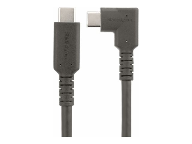 Connectez une source USB 10 Gbps et des périphériques, à l'aide de ce câble USB Type-C robuste à angle droit. Positionnez la connexion USB-C à angle droit le long de l'appareil pour réduire l'encombrement des câbles et éviter les tensions prolongées dues à la flexion.