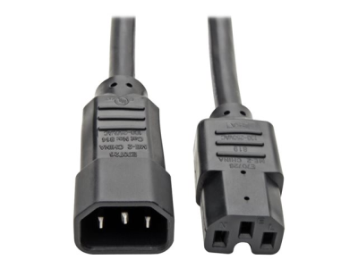 Les cordons d'alimentation C14 vers C15 de Tripp Lite permettent le branchement de matériels en réseau à haute tension dotés de connecteurs de type C15 à des PDU et des onduleurs avec des entrées de type C13. Le câble 14 AWG à usage intensif supporte des tensions jusqu'à 250 V. Les extrémités moulées assurent une durée de vie prolongée.