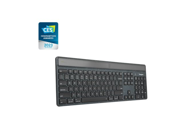 Targus EcoSmart - Clavier - collecte durable d'énergie - antimicrobienne - rétroéclairé - sans fil - Bluetooth 5.0 - QWERTY - Nordique - commutateur : commutateurs à clé à ciseaux - noir - emballages recyclés