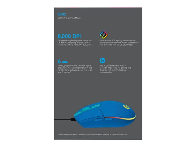 Souris de jeu Logitech G102 LIGHTSYNC - Souris - pour droitiers - optique - 6 boutons - filaire - USB - bleu