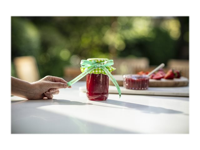 Lors d'occasions spéciales, utilisez le ruban TZe-RM54 avec votre étiqueteuse P-touch pour adresser vos vœux aux personnes qui vous sont chères. Laissez libre cours à vos talents et personnalisez vos cadeaux, vos cartes et vos créations avec le ruban tissu TZe-RM54 Brother original.