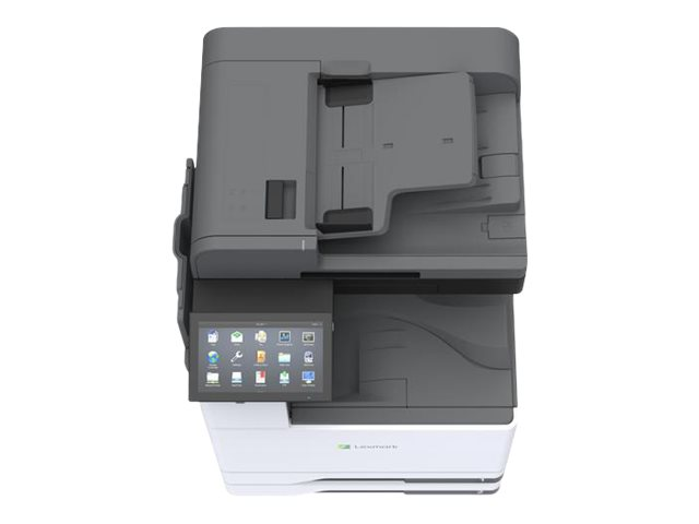 Le multifonction couleur grand format Lexmark CX942adse est conçu pour apporter aux grands groupes de travail la sécurité, la polyvalence et les performances qu'ils recherchent, grâce à une vitesse de 45 pages par minute. Doté de fonctionnalités standard, ce modèle est équipé d'un écran tactile de 25 cm, de la fonction de numérisation recto verso monopasse avec détection des alimentations multiples par ultra-sons, de la reconnaissance optique des caractères (OCR) et de la télécopie analogique. Plusieurs options de finition sont disponibles : unité de finition d'agrafage, module d'agrafage et perforation, unité de finition de livret ou premier module de finition avec pliage en trois/pliage en Z de Lexmark. Des solutions de flux de travail intégrées, telles que le Centre de numérisation pour le routage simple des documents, et des solutions logicielles de partenariat offrent un large éventail d'applications de capture et d'impression pour étendre vos processus métier au périphérique.