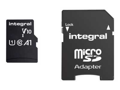 Integral - Carte mémoire flash (adaptateur microSDHC - SD inclus(e)) - 16 Go - A1 / Video Class V10 / UHS Class 1 / Class10 - microSDHC UHS-I INMSDH16G-100V10