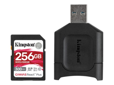 Kingston Canvas React Plus - Carte mémoire flash - 256 Go - Video Class V90 / UHS-II U3 / Class10 - SDXC UHS-II