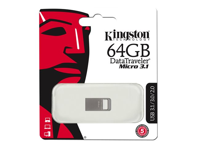 DataTraveler Micro 3.1 est une clé USB ultra-compacte, sans capuchon, légère, qui offre des vitesses USB 3.1 extrêmes en écriture. Elle est suffisamment petite pour rester branchée sur votre ordinateur portable lorsque vous le rangez dans son étui. Elle a aussi un orifice pour porte-clés. Vous pouvez stocker de vos chansons préférées, films, fichiers et autres documents sur cette clé Plug and Play. Elle est idéale pour les tablettes, les ordinateurs portables, les autoradios et les téléviseurs.