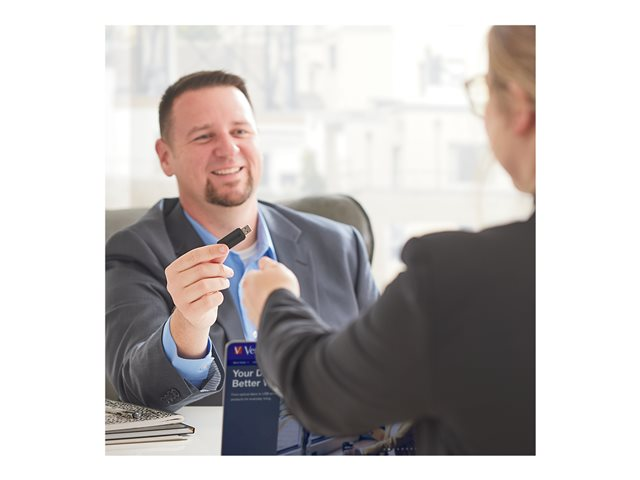 La clé USB PinStripe de Verbatim est rétractable, ce qui protège la connexion USB lorsqu'elle n'est pas utilisée, sans nécessiter de capuchon, qui se perd facilement.
