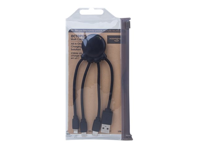 Xoopar Octopus - Câble Lightning - USB mâle pour Micro-USB de type B, Lightning, 24 pin USB-C mâle - 10 cm - noir