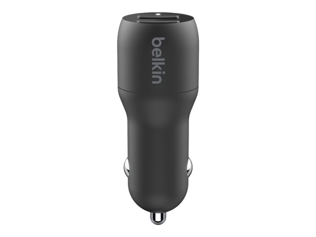 Belkin BOOST CHARGE Double chargeur - Adaptateur d'alimentation pour voiture - 24 Watt - 4.8 A - 2 connecteurs de sortie (USB) - sur le câble : USB-C - noir