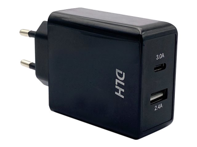 DLH DY-AU2640B - Adaptateur secteur - 24 Watt - 4.8 A - 2 connecteurs de sortie (USB, 24 pin USB-C) - noir DY-AU2640B