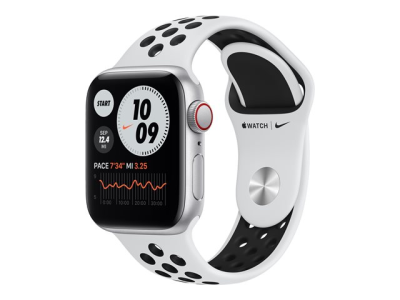 Apple Watch Nike SE (GPS + Cellular) - 40 mm - aluminium argenté - montre intelligente avec bracelet sport Nike - fluoroélastomère - platine pure/noir - taille du bracelet : S/M/L - 32 Go - Wi-Fi, Bluetooth - 4G - 30.68 g