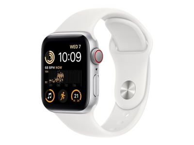 Apple Watch SE (GPS + Cellular) - 2e génération - 40 mm - aluminium argenté - montre intelligente avec bande sport - fluoroélastomère - blanc - taille du bracelet : Normal - 32 Go - Wi-Fi, LTE, Bluetooth - 4G - 27.8 g MNPP3NF/A