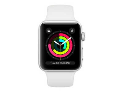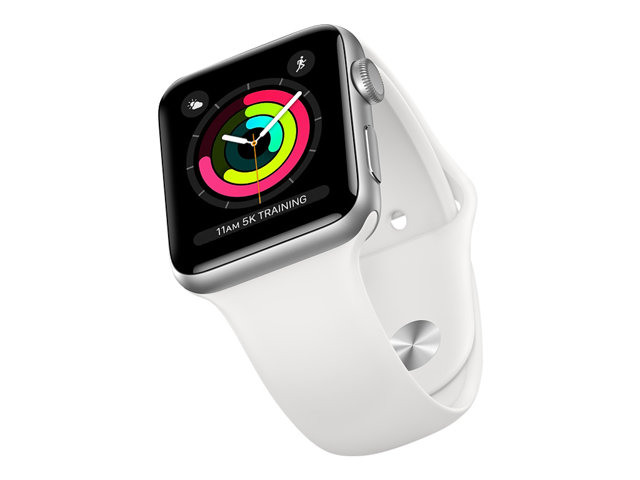 Apple Watch Series 3 (GPS) - 42 mm - aluminium argenté - montre intelligente avec bande sport - fluoroélastomère - blanc - taille du poignet : 140-210 mm - 8 Go - Wi-Fi, Bluetooth - 32.3 g