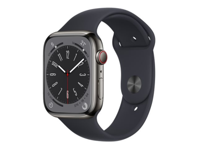 Apple Watch Series 8 (GPS + Cellular) - 45 mm - acier inoxydable graphite - montre intelligente avec bande sport - taille du bracelet : Normal - 32 Go - Wi-Fi, LTE, Bluetooth, UWB - 4G - 51.5 g