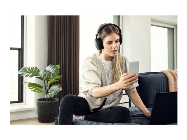 Restez concentré grâce à l'ANC qui réduit les bruits de fond, vous aide à conserver votre concentration dans les open spaces bruyants et booste votre productivité en déplacement. Bénéficiez d'une clarté d'appel exceptionnelle grâce à une solution optimisée UC et gérez plusieurs tâches à la fois en jonglant facilement entre vos appareils.