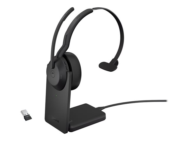 Jabra Evolve2 55 MS Mono - Micro-casque - sur-oreille - Bluetooth - sans fil - Suppresseur de bruit actif - USB-C via un adaptateur Bluetooth - noir - avec support de chargement - certifié Zoom, Cisco Webex Certified, Certifié Tencent Meeting, Certifié Alcatel-Lucent, Certifié Avaya, Certifié Unify, Certifié MFi, Certifié Google Meet, Certifié Amazon Chime