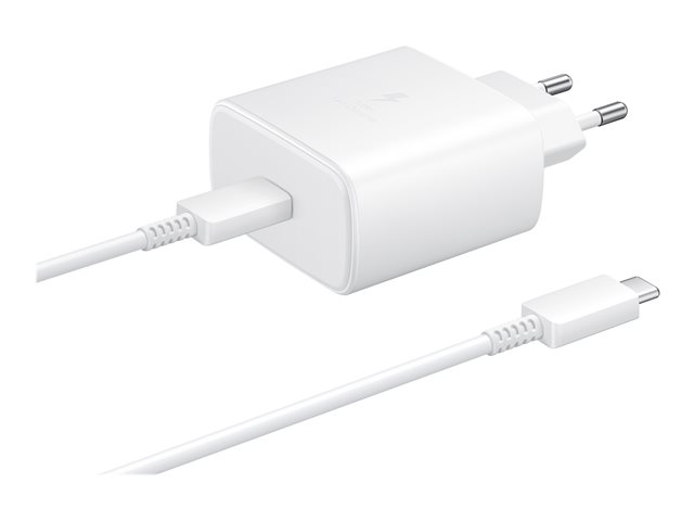 Samsung Travel Adapter EP-TA845 - Adaptateur secteur - 45 Watt - 3 A - SFC 2.0 (24 pin USB-C) - sur le câble : USB-C - blanc - pour Galaxy A20, A50, A70, A8s, M30, M40, Note10, S20, S20 5G, S20+ 5G, Z Flip, Z Flip 5G