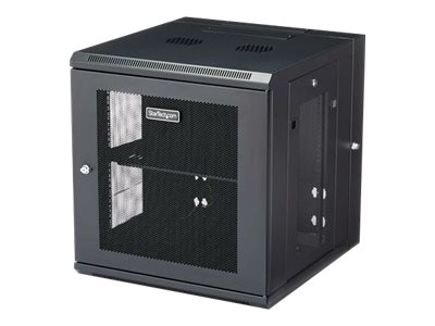 StarTech.com 12U 19" Wall Mount Network Cabinet, 20" Deep 4 Post Hinged Locking IT Computer Equipment Enclosure with Shelf, Flexible Vented Switch Depth Data Rack Cisco 3850, 2960 Series - 12U Vented Cabinet (RK1224WALHM) - Armoire de rack - montable sur mur - noir - 12U RK1224WALHM