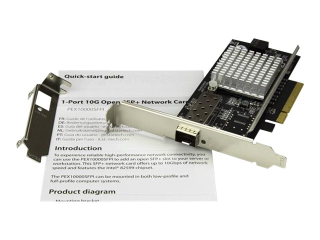 StarTech.com Carte réseau PCI Express à 1 port fibre optique 10 Gigabit Ethernet SFP+ ouvert - Chipset Intel - Adaptateur NIC PCIe - MM/SM - Adaptateur réseau - PCIe 2.0 x8 - 10GbE - 10GBase-LR, 10GBase-SR, 10GBase-LRM - noir - pour P/N: SFP10GBBXDST, SFP10GBBXUST, SFP10GBLRMST, SFP10GBLRST, SFP10GBSRST, SFP10GBZRST