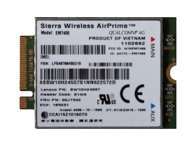 Le module Sierra Wireless AirPrime EM7455 prend en charge les réseaux 4G et 3G récents d'Amérique du Nord, en Europe et en Asie. Grâce à sa taille réduite, la carte PCI Express M.2 s'intègre facilement à des appareils plus petits et plus fins.