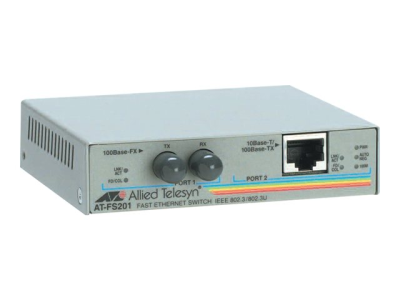 Allied Telesis AT FS201 - Convertisseur de média à fibre optique - 100Mb LAN - 10Base-T, 100Base-FX, 100Base-TX - ST multi-mode / RJ-45 - jusqu'à 2 km