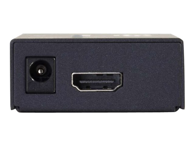 Le kit extenseur (rallonge) courte portée pour HDMI sur Cat5 est une solution parfaite pour prolonger les signaux audio/vidéo HDMI au delà des 15 mètres qui est la limite de longueur habituelle des câbles HDMI. Cette solution permet de prolonger le HDMI jusqu'à 50 mètres et exige l'utilisation de deux cordons de raccordement Cat5. Grâce à l'égalisation automatique, cette installation est facile quelle que soit la longueur des cordons de raccordement Cat5 utilisés. Il suffit de raccorder les câbles HDMI et Cat5, et l'émetteur et le récepteur s'ajustent automatiquement pour optimiser la vidéo en fonction de la longueur du câble utilisé. L'intercommunication EDID est prise en charge afin de garantir que le contenu est transmis à la résolution optimale pour l'affichage. HDCP est pris en charge ce qui permet au contenu protégé d'être transféré par cette solution de rallonge. La résolution maximale prise en charge varie en fonction du type et de la longueur du câble de raccordement Cat5.