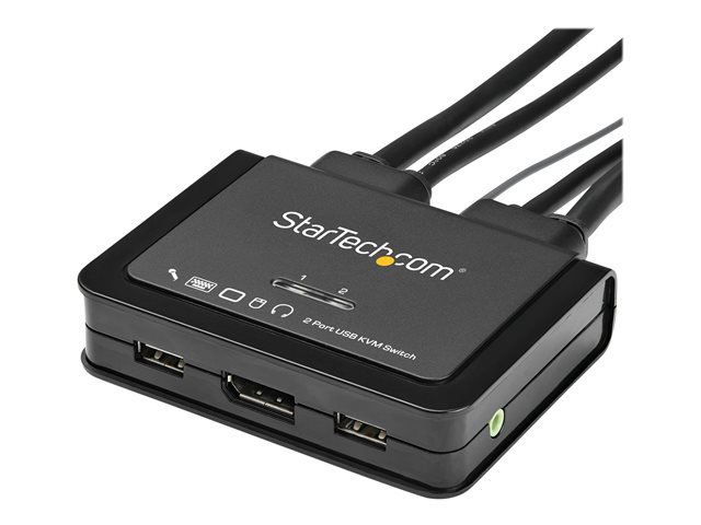StarTech.com Switch KVM DisplayPort 2 Ports- 4K 60 Hz - Commutateur KVM USB DP 1.2 UHD avec Câbles 1,2 m Integrés & Audio - Alimenté par Bus - Commutation à Distance 1,5 m avec Bouton (SV211DPUA4K) - Commutateur écran-clavier-souris/audio - 2 x KVM / audio - de bureau SV211DPUA4K