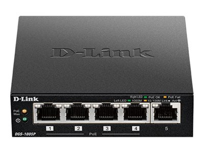 D-Link DGS 1005P - Commutateur - 5 x 10/100/1000 (4 PoE+) - de bureau - PoE+ (60 W) DGS-1005P/E