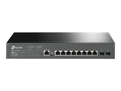 TP-LINK JetStream T2500G-10MPS - Commutateur - Géré - 8 x 10/100/1000 (PoE+) + 2 x Gigabit SFP - Ordinateur de bureau, Montable sur rack - PoE+ (116 W)