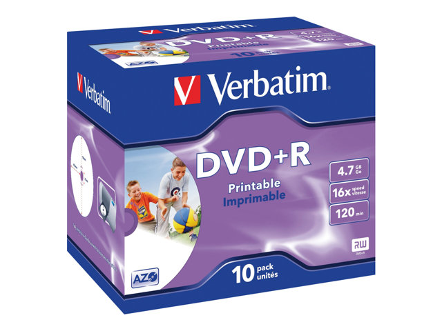 Verbatim DataLifePlus - 10 x DVD+R - 4.7 Go 16x - surface imprimable par jet d'encre - boîtier CD